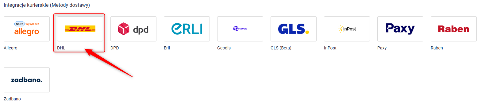 2. Przejdź do Integracje ⇨ [Nowe] Integracje kurierskie i wybierz DHL i zaloguj się na swoje konto.