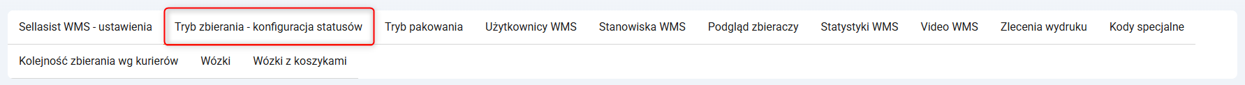 1. Przejdź do zakładki Magazyn ⇨ Ustawienia WMS.2. Wybierz Tryb zbierania - konfiguracja statusów.