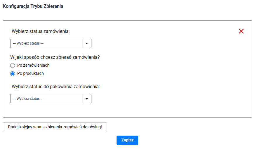 1. Kliknij Dodaj kolejny status zbierania zamówień do obsługi.