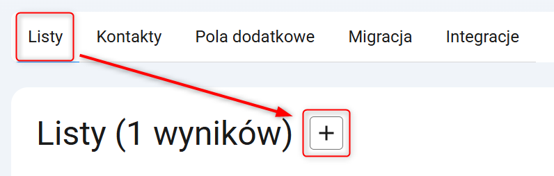 1. Przejdź do Marketing [BETA] → Kontakty → Listy i kliknij przycisk z ikoną plusa.