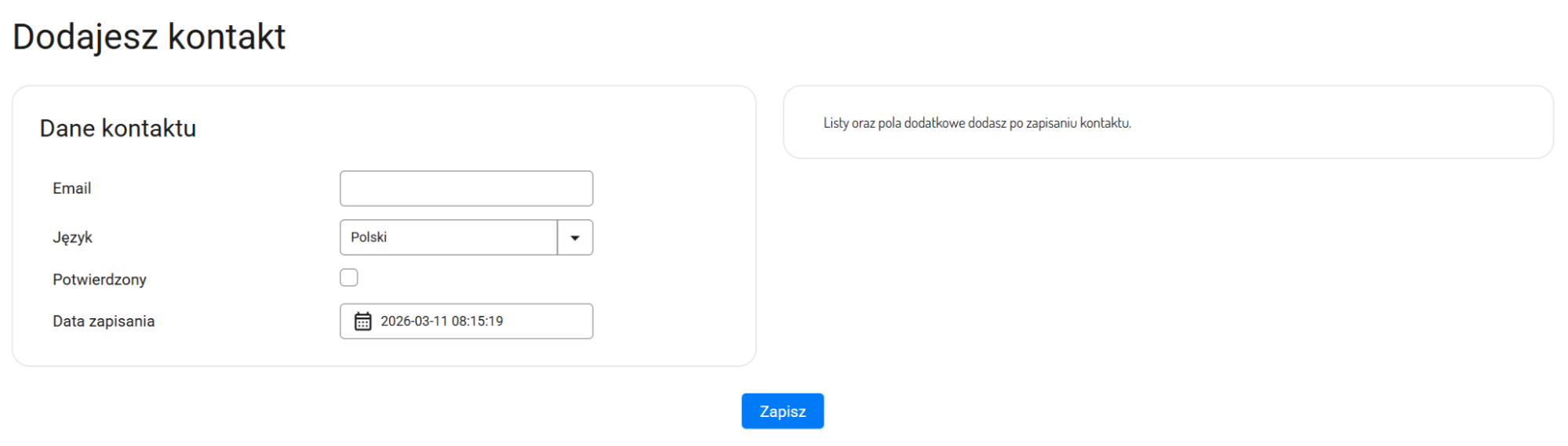2. Uzupełnij dane kontaktowe i kliknij przycisk Zapisz.