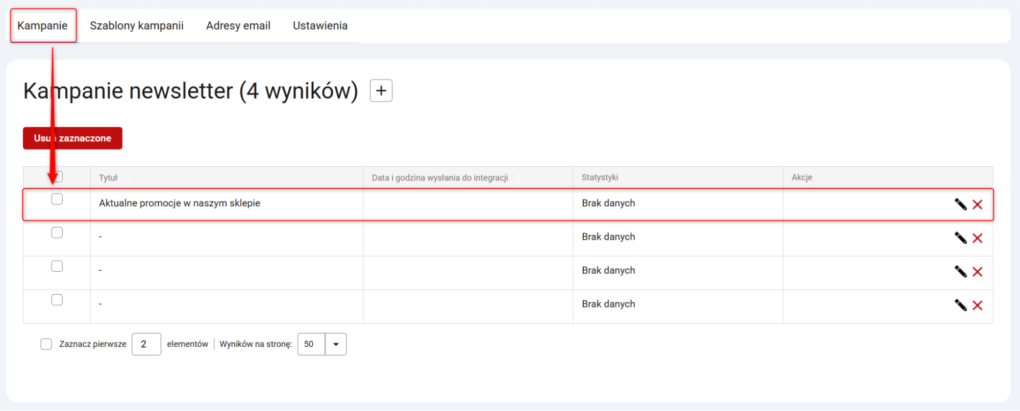 4. Po zapisaniu zmian, nowy newsletter zostanie dodany na liście kampanii.