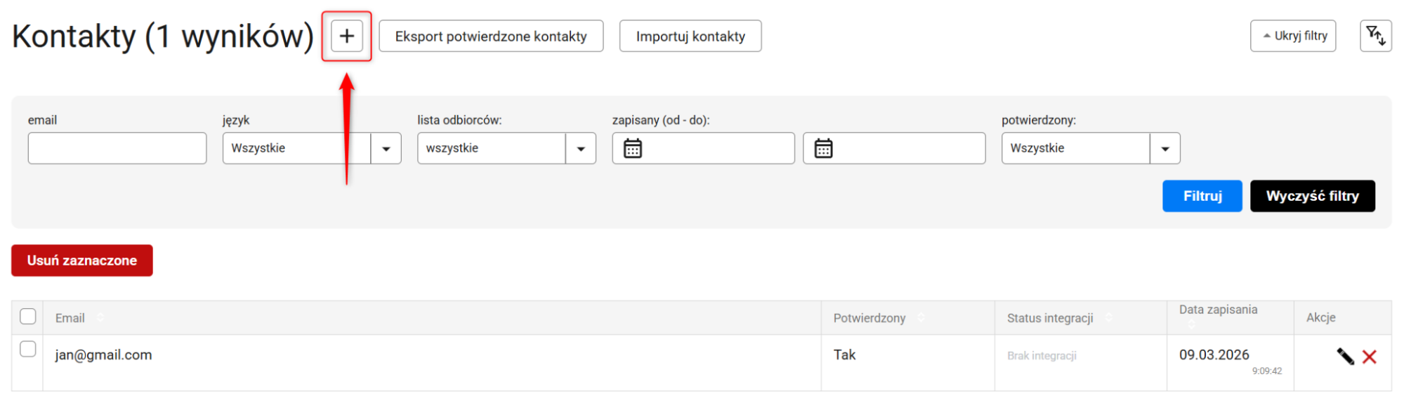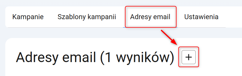 1. Przejdź do Marketing [BETA] → Newsletter [NOWY] → Adresy e-mail i kliknij przycisk z ikoną plusa.
