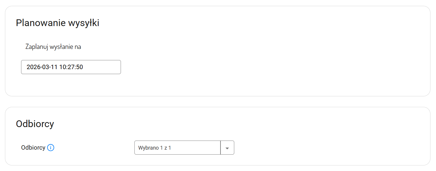 Skonfiguruj newsletter według własnych potrzeb. Jeśli chcesz, w sekcji Tworzenie wiadomości możesz także skorzystać z szablonów przygotowanych w poprzednim kroku. Następnie zaplanuj wysyłkę oraz ustaw odbiorców.