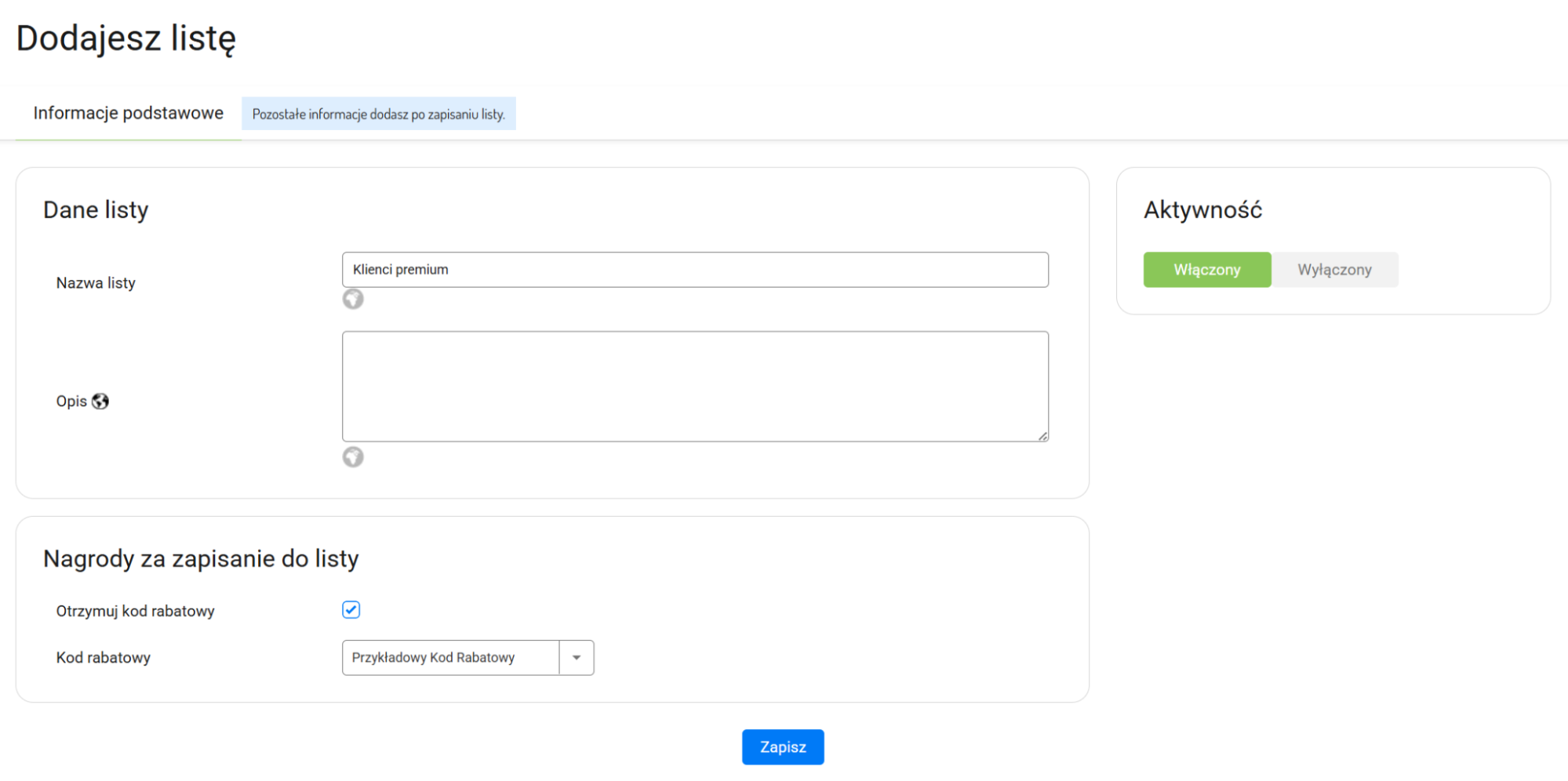 3. Po wypełnieniu formularza, kliknij przycisk Zapisz.