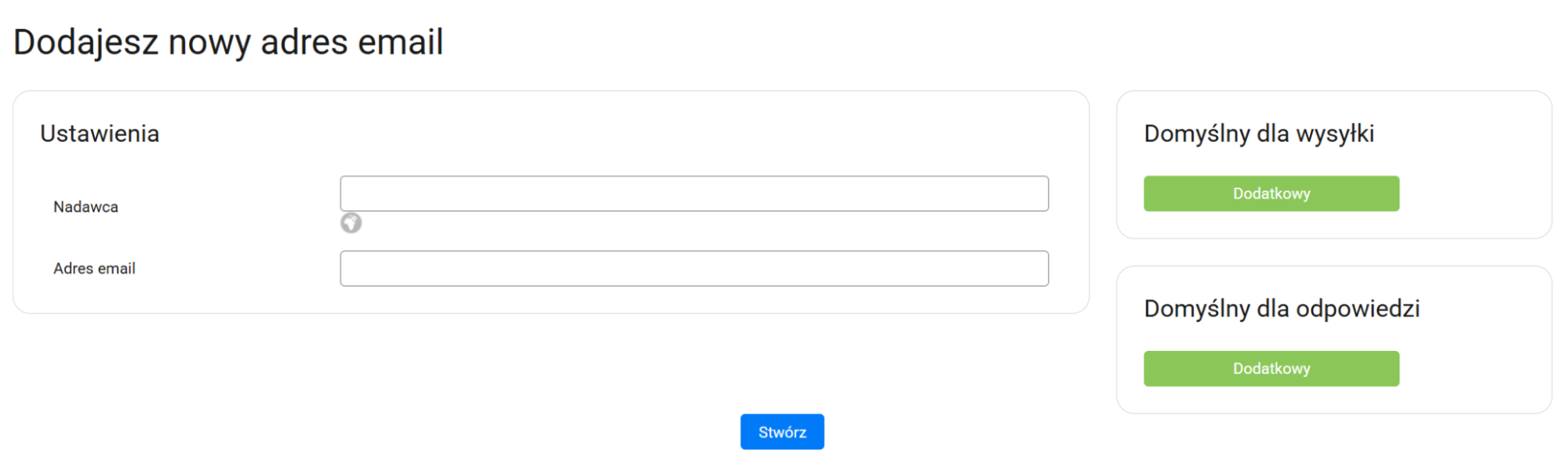 2. Na ekranie zobaczysz formularz dodawania nowego adresu nadawczego. Wprowadź ten sam adres e-mail, który podałeś w panelu swojego systemu mailingowego.