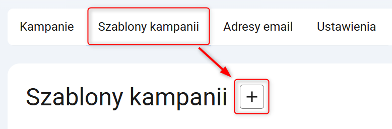 1. Przejdź do Marketing [BETA] → Newsletter [NOWY] → Szablony kampanii i kliknij przycisk z ikoną plusa.