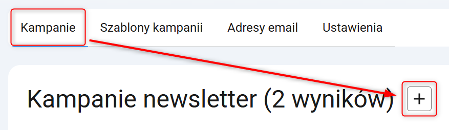 1. Przejdź do Marketing [BETA] → Newsletter [NOWY] → Kampanie i kliknij przycisk z ikoną plusa.