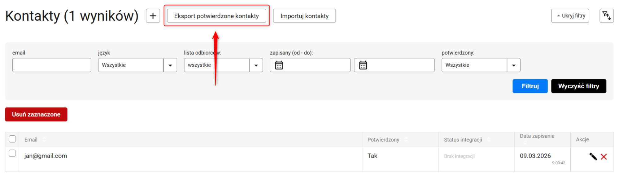 1. Kliknij przycisk Eksport potwierdzone kontakty.