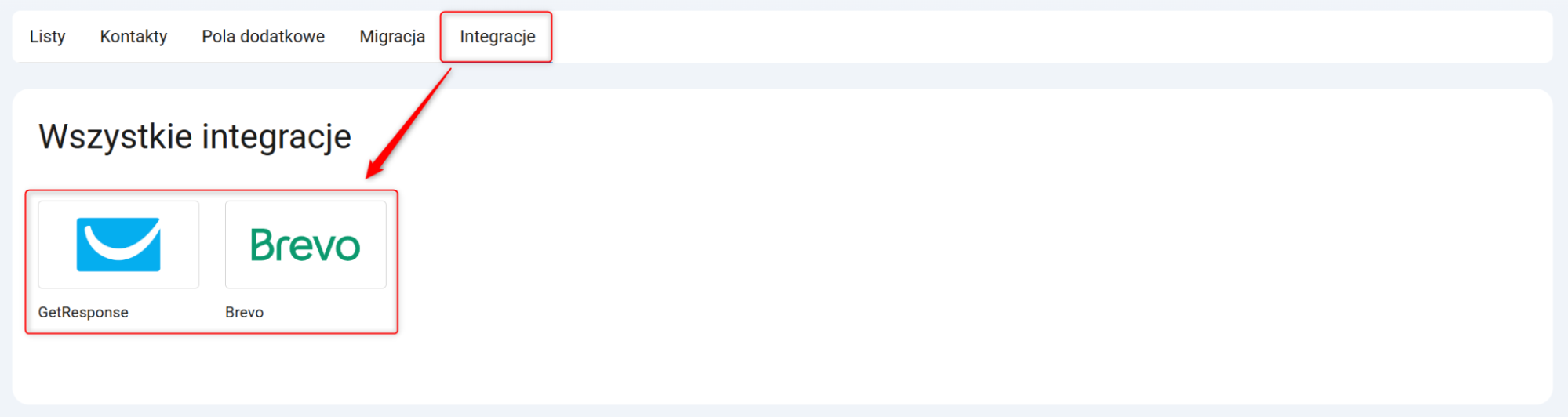 1. Przejdź do Marketing [BETA] → Integracje i wybierz jedną z dostępnych opcji.