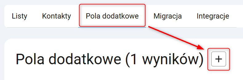 1. Przejdź do Marketing [BETA] → Kontakty → Pola dodatkowe i kliknij przycisk z ikoną plusa.