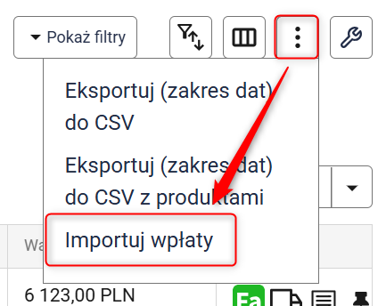 - Importować wpłaty