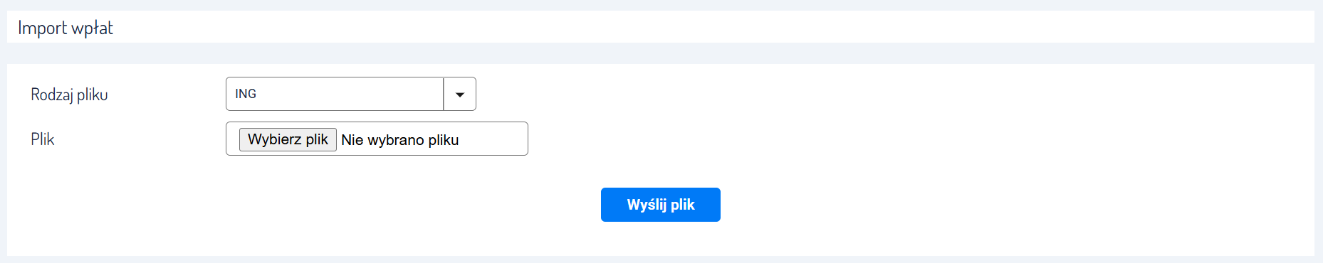 Importu wpłat dokonasz, wybierając
