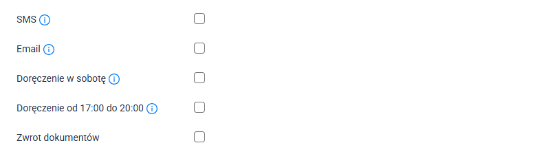 - Doręczenie w sobotę: Włącz/wyłącz opcję doręczenia przesyłki w sobotę.
