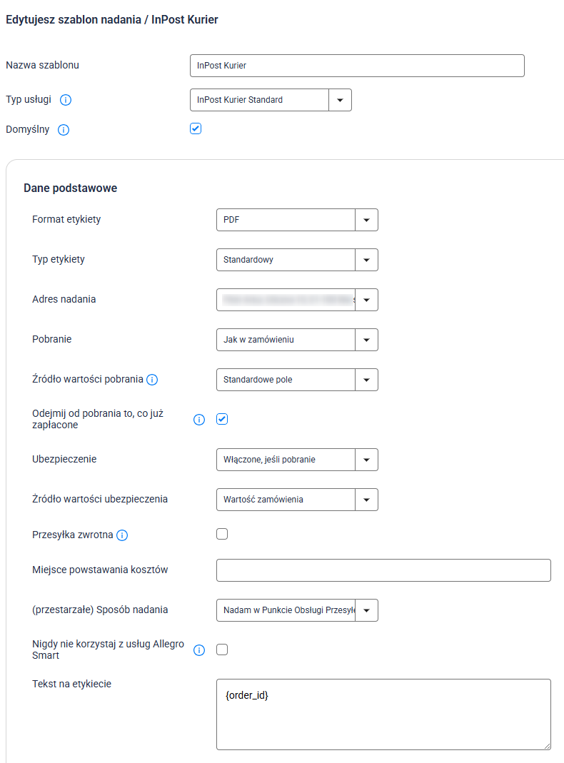 - Nazwa szablonu: Nadaj unikalną nazwę (np. InPost Kurier).