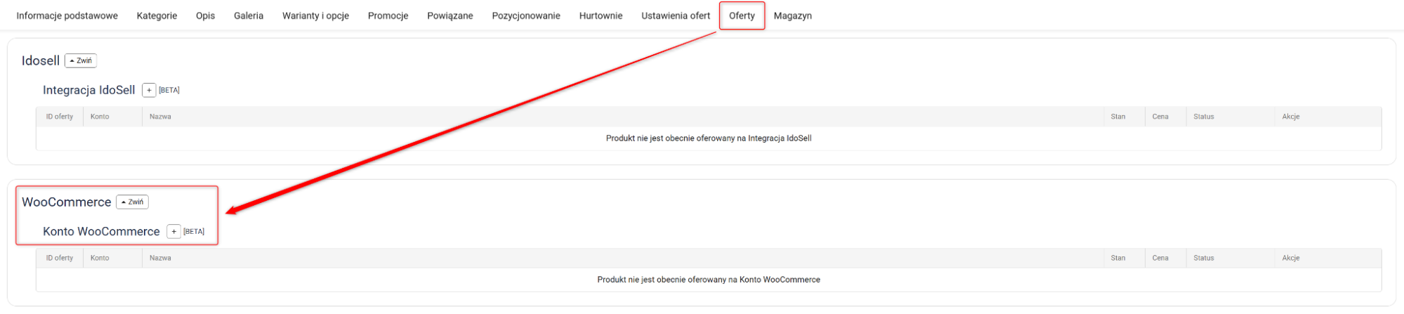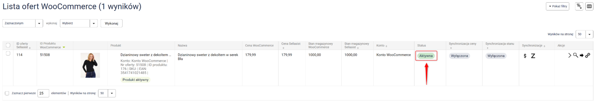 5. Poprawnie wystawiona oferta pojawi się w Oferty → WooCommerce i zmieni status na Aktywna.