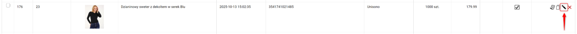 1. Przejdź do Asortyment → Produkty i przy wybranej pozycji kliknij przycisk z ikoną ołówka.
