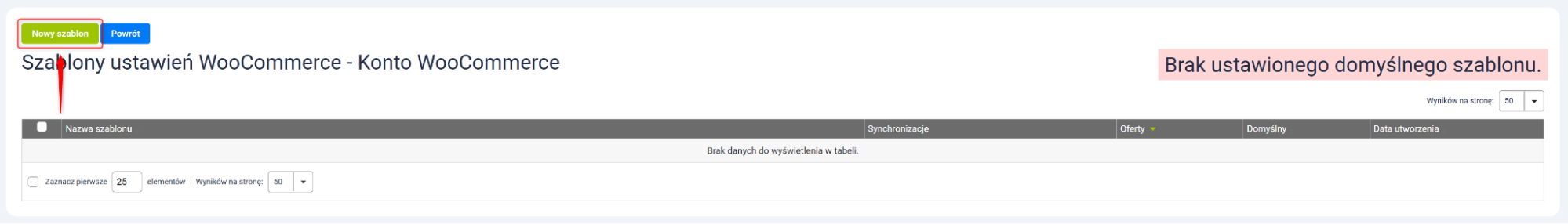 1. Na karcie dodawania nowego szablonu ustawień kliknij przycisk Nowy szablon.
